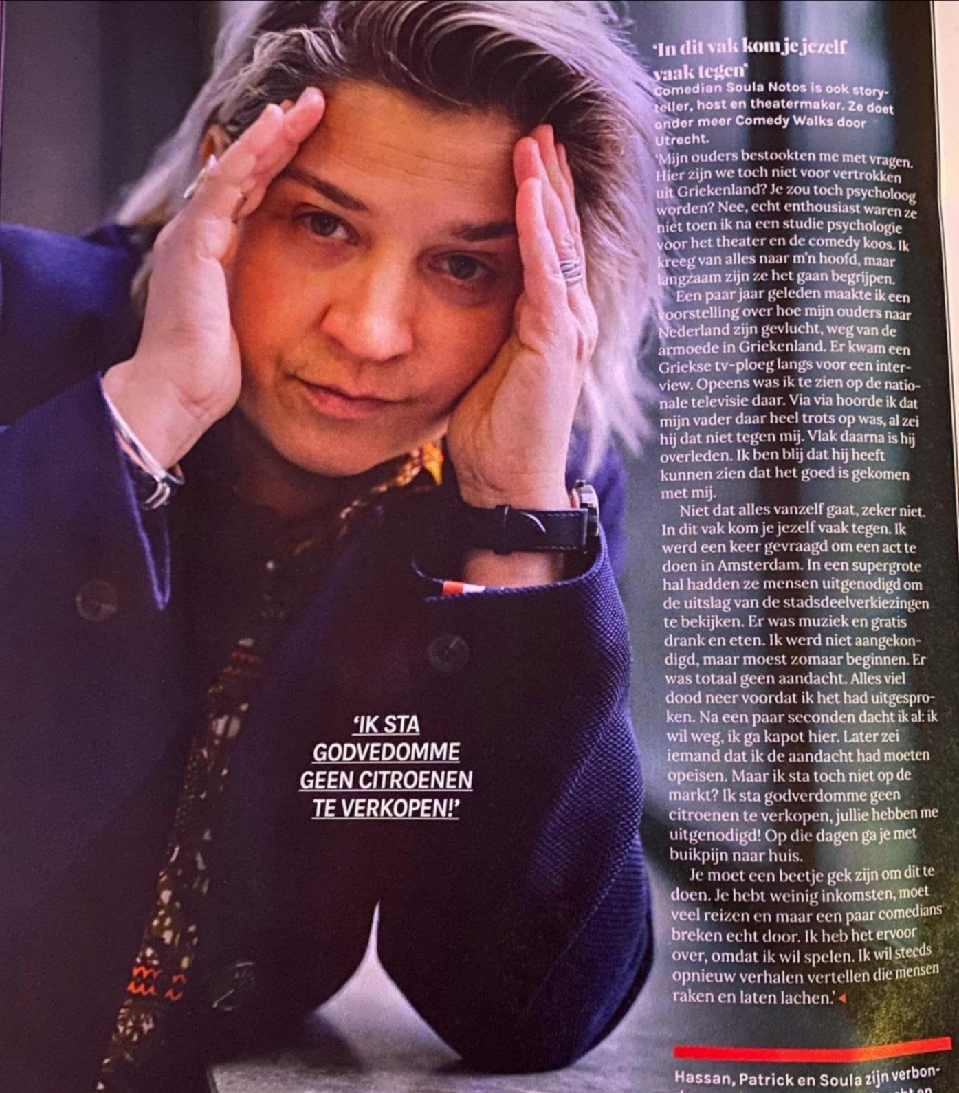Soula Notos is een veelzijdig performer (theater, spoken word, stand-up comedy, storytelling). Ze maakte onder meer de voorstellingen